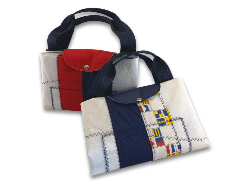 La borsa, rigorosamente realizzata a mano in Italia utilizzando vele riciclate, è infatti ripiegabilie con tre semplici movimenti.